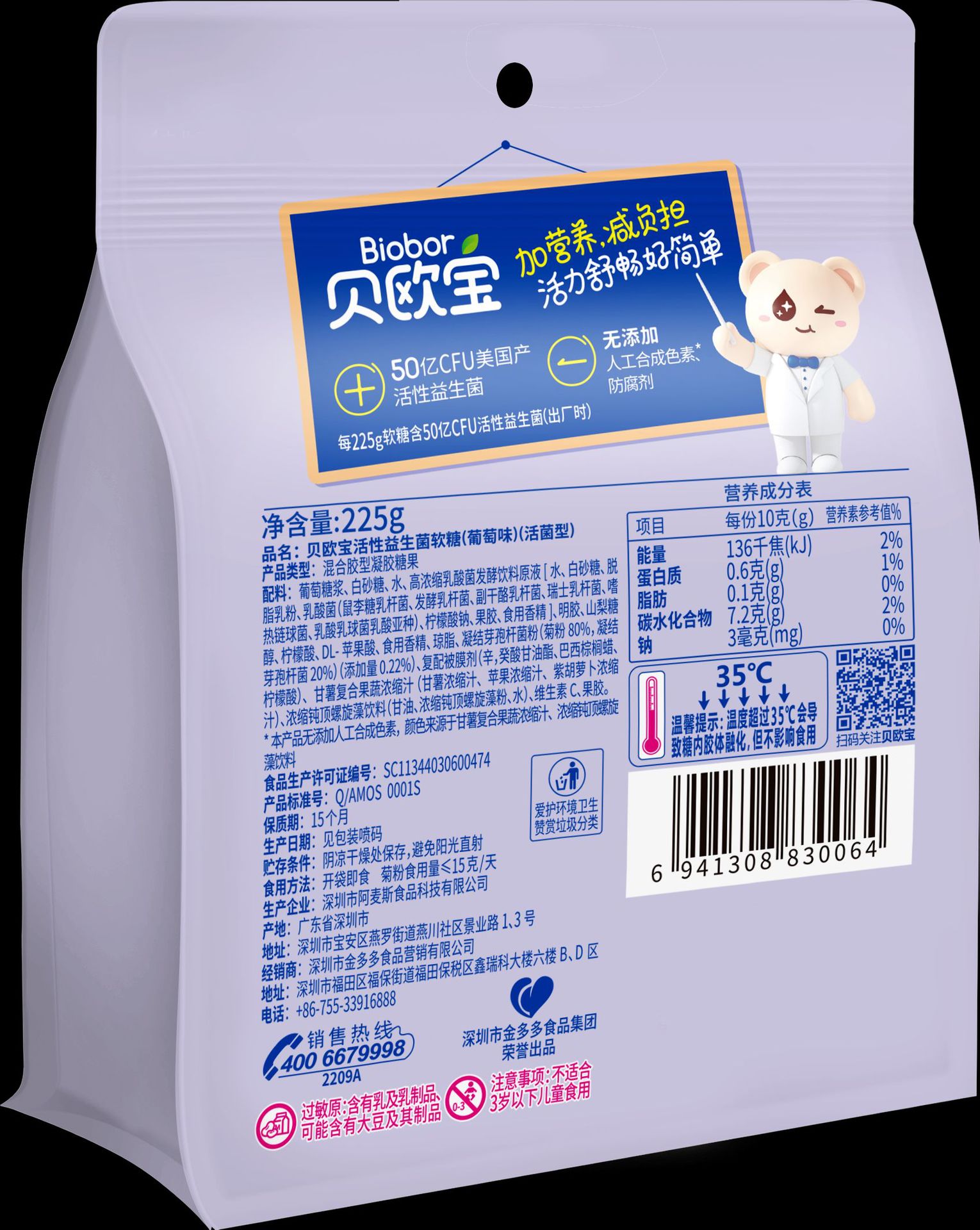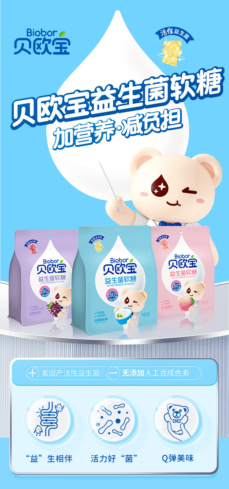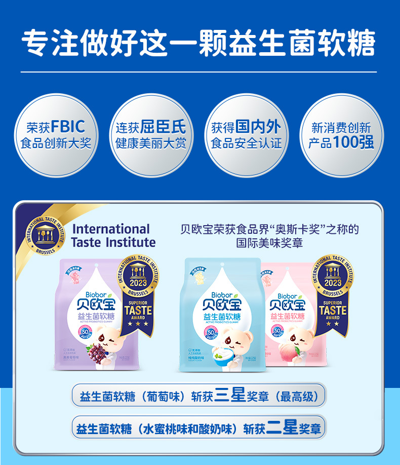贝欧宝益生菌软糖225g独立包装水果味软糖果零食喜糖婚庆 新式软糖